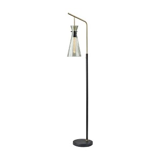 Adesso Walker Floor Lamp: Vintage Edison Bulb, Smoked Glass Shade, Black & Antique Brass