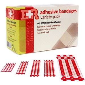 - 280 ASSORTED BANDAGES - Our adhesive bandage variety pack is great for anyone looking to keep a wide variety of variously sized adhesive bandages handy. Each box contains 280 individually wrapped bandages for treating minor cuts, scrapes and abrasions.