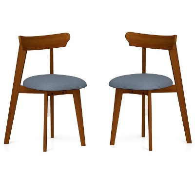 ADILE Upholstered Dining Chairs, Linen Fabric Wooden Kitchen Chairs, Set of 2