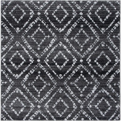 Elevate your space with this luxurious 6' X 6' Square area rug, boasting a sophisticated black and silver color palette. The square shape and modern 3/8" pile height create a sleek profile, while the power-loomed construction ensures precision and durability in every thread. Crafted from a blend of 55% Polypropylene, 40% Jute, and 5% Polyester, this rug offers a balance of comfort and reliability. Its intricate pattern, featuring a harmonious mix of geometric motifs framed by a decorative border, provides depth and character to any room. Made in Turkey, the rug echoes the rich tapestry of its heritage. This stylish piece is not just a statement of fashion but also bears the OEKO-TEX certification, ensuring it meets high safety and environmental standards. Perfect for high-traffic areas or as a centerpiece, this rug will bring timeless elegance to your home d?cor.