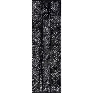 Elevate your space with this luxurious 2'-6" X 22' oversized area rug, masterfully power-loomed to create a sophisticated and durable centerpiece. The black and silver hues evoke a sleek and modern feel, while the intricate geometric patterns provide a timeless elegance. This exquisite rug is crafted from a blend of 55% Polypropylene, 40% Jute, and 5% Polyester, ensuring both softness and resilience. With a comfortable 3/8" pile height, it offers a plush underfoot experience without compromising on ease of maintenance. Made in Turkey, this rug embodies a fusion of traditional craftsmanship and contemporary style. It boasts OEKO-TEX certification, guaranteeing that it is free from harmful substances. Make a statement in your home or office with this stylish and environmentally conscious choice.