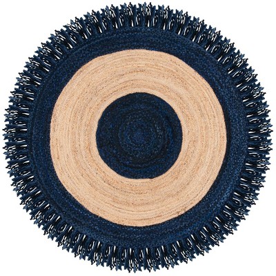 Elevate your space with the contemporary elegance of our Navy/Grey Round Area Rug. Expertly crafted in Turkey using a Power Loomed technique, this round rug spans 5 feet in diameter, providing a beautiful accent to any room. Its plush 3/8 inch pile height is the perfect blend of comfort and durability.