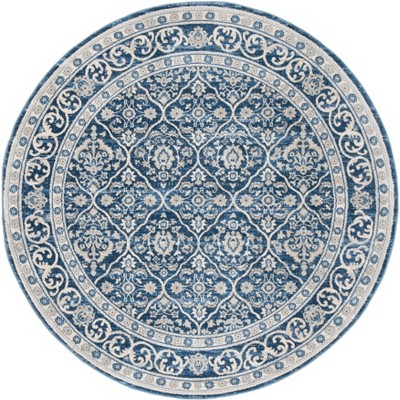 Introducing our elegant 3' X 3' Round area rug, a tasteful addition to any room. This navy and ivory rug showcases a harmonious blend of traditional and contemporary styles with its geometric pattern, offering both visual appeal and texture to your space. Crafted with the utmost precision using a power-loomed technique, the rug boasts a resilient 55% polypropylene, 40% jute, and 5% polyester composition, ensuring durability and easy maintenance. The comfortable 3/8" pile height invites you to sink your feet into its softness. Proudly made in Turkey, this rug's quality is further certified by the OEKO-TEX standard, guaranteeing that it's free from harmful substances. Harmonize your decor with this exquisite round rug, where timeless design meets modern craftsmanship.