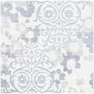 Introduce a touch of contemporary elegance to your home with this chic 4' x 4' square area rug. Showcasing a striking ivory and grey geometric pattern, this piece effortlessly blends style with comfort. The rug's power-loomed construction ensures precision and durability, while its 3/8" pile height provides a delightful underfoot experience.
