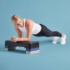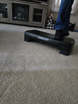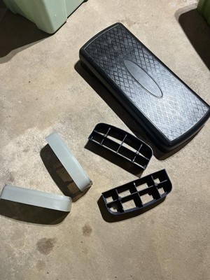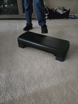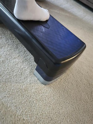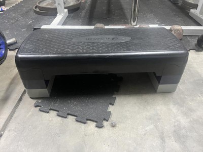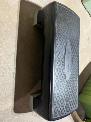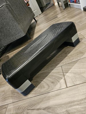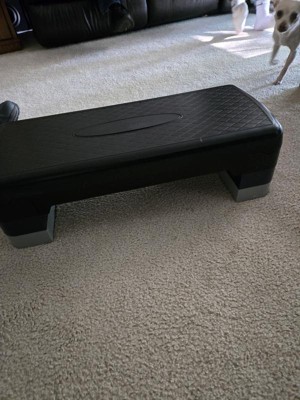 Step exercise deck designed with a wide platform for different cardio-based workouts. Features a diamond grove pattern on the surface. Adjustable design with two levels allows you to adjust the height as needed for different workouts. Weight capacity of up to 300 pounds.