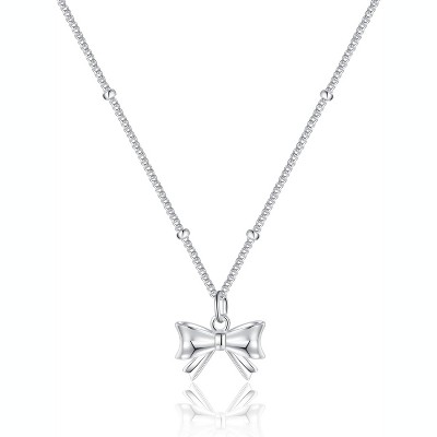 - Bow Necklace for Sweater Specifications: 1.Necklace Chain Length:83cm, pendant measures 3*3cm/4*4cm, 2.Stone Color:white, Stone Shape:Round diamond shape, 3.Metal Type: Eco-friendly White Gold Plated Alloy.