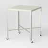 Upgrade the decor of your dorm or apartment with the Adjustable Dorm Bistro Table from Room Essentials™. This off-white bistro table is designed with a metal frame for a sleek look. It features an adjustable-height design for versatile use and built-in wheels for easy movement from one place to another.