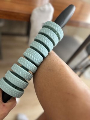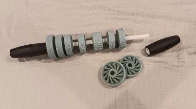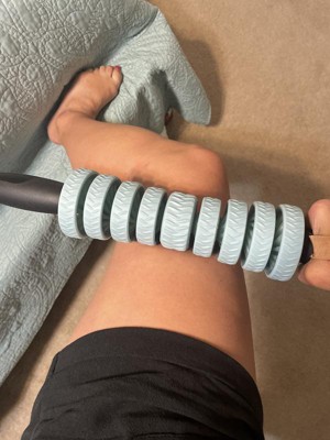 This is a great roller! The handles make it easy to hold and the thing bends to the body position you’re trying to massage. I like that you can take rings out to make it adjustable too. The blue pieces aren’t very firm, so when i need more pressure I use something else.