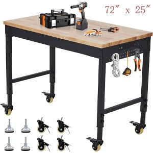 72"L x 25"W Adjustable Height Workbench Workstation With Power Outlets & Casters