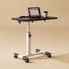 - 【Adjustable Height】The rolling side table desk features adjustable height settings, allowing you to find the ideal position for sitting or standing, enhancing comfort and convenience during use.