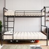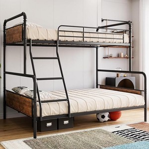 - Heavy-Duty Industrial Construction: Reinforced steel frame supports 450 lbs (lower bunk) / 300 lbs (upper bunk). It also features high guardrails and a built-in ladder with flat rungs for secure climbing. No wobbling,no noise.