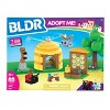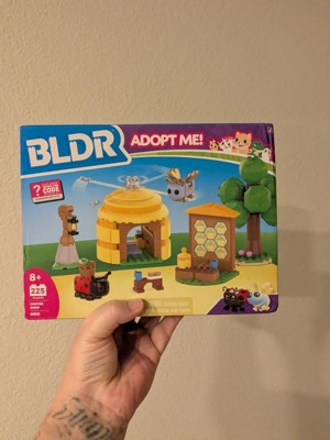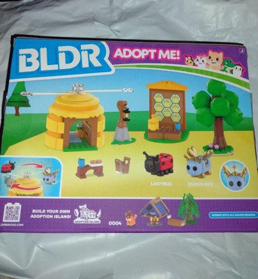 Introducing the first-ever buildable, action-packed Adopt Me Coffee Shop playset! Bring the enchanting world of your favorite online game to life with the Ladybug and Queen Bee, featuring a fun mechanical feature that allows the pets to take "flight" with a spin of the beehive top. The buildable pets come with articulated necks, heads, and pivoting wings. This playset brings elegance and wonder to playtime, featuring accessories like a picnic basket and a gold tiara. Take Ladybug or Queen Bee inside the beehive for delicious cookies with milk and a peaceful nap. Redeem your Official Digital Roblox Item for even more in-game fun! BLDR bricks are compatible with all major construction brands, ensuring endless possibilities for creativity. Experience the magic of Adopt Me in the real world with this exciting playset - perfect for kids and fans who love to build, imagine, and play!