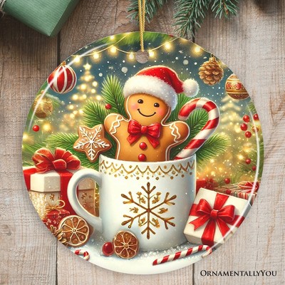 Adorable Cat in Santa Hat Stained Glass Style Ceramic Ornament, Christmas Gift and Decor 3