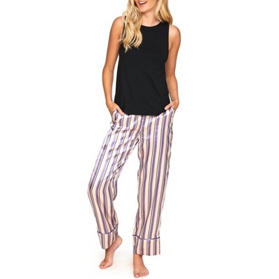 This Bryony cami & pants set is sure to be your new favorite sleepwear. The cami top has triangle cups with lace detailing, and the pants have an elastic waistband for a comfortable and flattering fit.