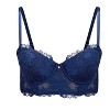 This longline contour demi bra features floral embroidery, soft satin, and velvet trim. It has fully adjustable straps, an hook and eye closure.