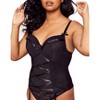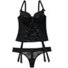 This plunging lace-up bustier flatters your shape and curves with its contour demi cups and pretty floral-lace side panels. Wear it with a matching thong and thigh-highs to complete your hottest look!