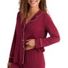 This sleepwear set includes a top with a notch collar, long sleeve, contrast piping details, and fabric-covered buttons, as well as a pant with an elastic waistband for added comfort. A timeless holiday pajama set for cozy Christmas mornings or a thoughtful gift.