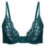 This elegant everyday plunge bra features unlined lace cups, supportive underwire, and adjustable straps.