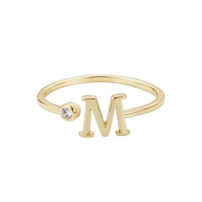 Adornia 14k Gold Plated Adjustable CZ Initial Ring