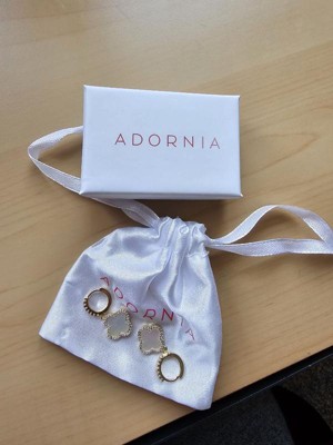 The Adornia 14k Gold Plated Crystal Halo Clover Dangle Huggie Earrings combine playful elegance with a touch of sparkle. Made from 14k yellow gold-plated brass, these earrings feature a clover-shaped charm surrounded by a halo of crystals, adding a refined yet fun touch. Available in two beautiful options—white mother-of-pearl for a soft, luminous look, or a vibrant orange color for a bold pop of style.