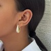 These 14k gold plated hoops feature a secure hinge closure and a row of small CZ stones along the front. Theyre designed to stay comfortably in place while adding a touch of sparkle thats noticeable but not overpowering. A practical yet polished choice for everyday wear.