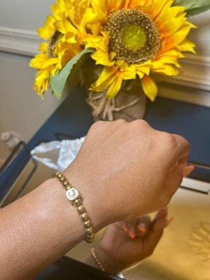 Crafted from brass and finished with 14k yellow gold plating, this bracelet offers both durability and a polished look. The stretch design ensures a comfortable fit, making it an easy-to-wear accessory for any occasion.