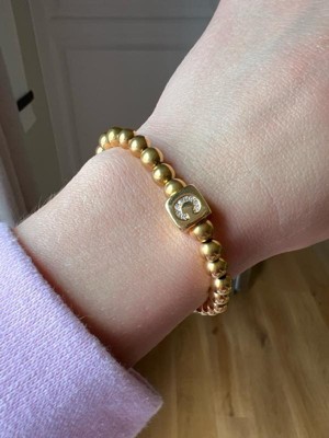 [This review was collected as part of a promotion.] This bracelet is so beautiful, it has a cube with a C initial and beautiful stones in it. Making it look so elegant and chic , very versatile to wear with different outfits, this will go good with any outfit. It fit perfectly, it doesn’t pull my corporal hair and it doesn’t hurt my wrist, I honestly love it , it is a very nice quality material. Overall this is beautiful and I love how it looks.