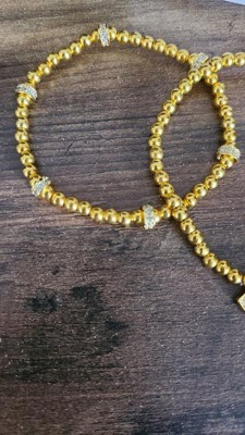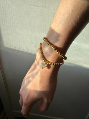 [This review was collected as part of a promotion.] Although I was disappointed the beads are gold coated plastic, the bracelets do look pretty layered on with other pieces and can add to any stack. They’re comfortable to wear, last well if you remove them before showering/sleeping and stretch to fit a variety of wrist sizes!