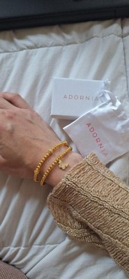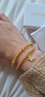 Adornia 14k Gold Plated Pair of Bead Bracelets with Crystal Charm butterfly