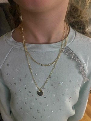 beautiful necklace with a layered chain and a cute little heart pendant, the chains are different but match each other well