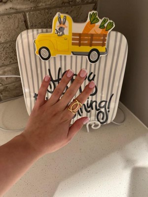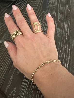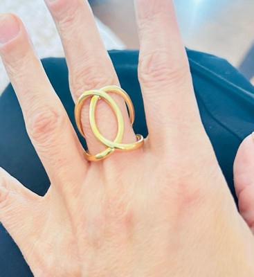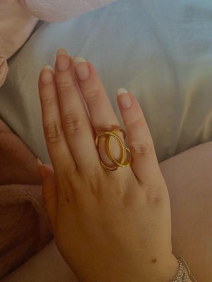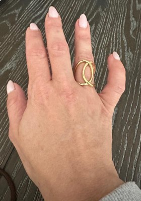 [This review was collected as part of a promotion.] although i am not typically drawn to gold jewelry, i fell in love with the gold ring. the unusual design is so special and adds a lot to my style. i am a size 7 and this fit perfectly!
