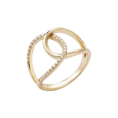 Adornia 14k Gold Vermeil .925 Sterling Silver CZ Crossed Half Eternity Band Ring