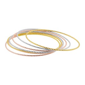 The Adornia 7-Piece Skinny Bangle Set offers a chic, minimalist design that can be worn individually or stacked for a bold statement. Available in two options — a tri-color set featuring 14k yellow gold plating, 14k rose gold plating, and white rhodium plating, or a classic plain gold set with 14k yellow gold plating — these bangles add versatile elegance to any outfit.