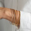 Crafted from brass and finished with 14k gold, rose gold, or rhodium plating, the bangles are lightweight yet durable. Their slim, sleek profile makes them perfect for stacking or wearing alone for a more delicate, understated look.