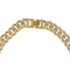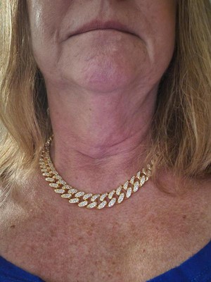[This review was collected as part of a promotion.] This is a very hefty and well crafted piece of jewelry. The curbs do make it hard to get the necklace to lay flat. The gold is very bright yellow, resembling 24kt gold. If you like a more soft, muted gold, pass on this one. It’s quite sturdy and very much in style. It’s very much a nice made piece of costume jewelry.