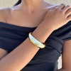 This chunky cuff in warm gold plating makes a simple, bold statement. Its smooth, wide design feels substantial without being heavy, slipping on easily to add a modern edge to any outfit. A straightforward piece that works just as well with casual looks as it does with dressier styles.
