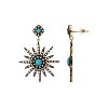 The Adornia Mixed Metal Starburst Drop Earrings combine bold design with vibrant color. Made from black rhodium-plated brass with 14k gold-plated accents, these earrings feature a stunning crystal starburst design, with a striking turquoise resin center. The combination of the sparkling crystals and the rich turquoise at the heart of the star creates a dynamic, eye-catching look that adds both texture and color.