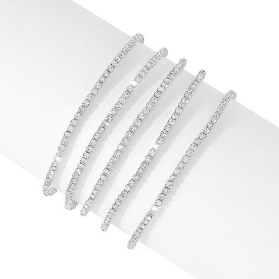 Each bracelet in the set is designed for comfort and easy wear, with a flexible stretch band that fits most wrist sizes. The combination of the radiant gold or silver finish and the brilliant crystals makes these bracelets perfect for both everyday wear and special occasions. Whether worn individually for a more minimalist look or stacked together for a bold, layered style, these bracelets offer endless styling options.