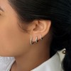 Perfect for wearing alone or layering with other earrings, these pave huggie hoops are versatile enough to complement both casual and formal outfits. The tarnish-resistant silver plating ensures lasting shine, while the durable construction provides long-lasting wear. A sparkling and versatile addition to any jewelry collection.