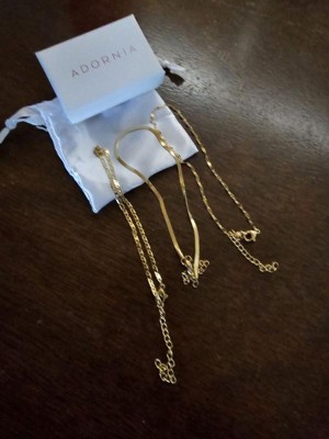 Product Name: Adornia Tarnish Resistant 14k Gold Plated Adjustable 9-11" Herringbone, Valentina, and Mariner Chain Anklet Set