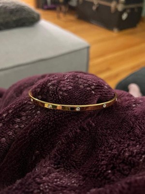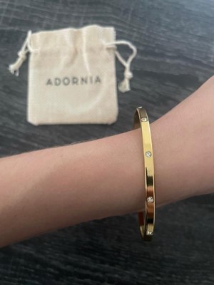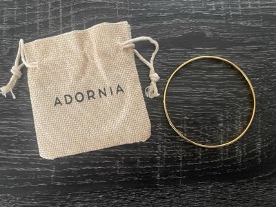 [This review was collected as part of a promotion.] This bangle is beautiful! It came in an Adornia branded pouch, which I really appreciated. It's a nice touch. This bangle is made from 14k gold-plated stainless steel, so you don't have to worry about it tarnishing or turning colors (this is super important to me)! It's a simple way to add a little sparkle to any look I wear. I love it!
