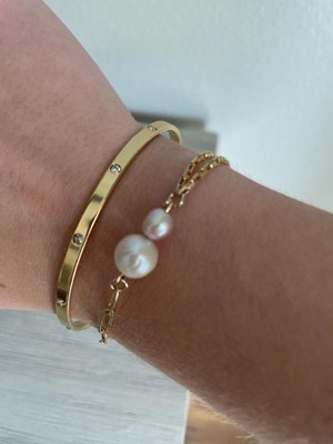 Its versatile design makes it ideal for both casual and more refined outfits. Whether worn solo for a subtle look or stacked with other bangles for a bolder statement, this piece adds a touch of sophistication to any jewelry collection. The tarnish-resistant coating ensures that it will continue to shine with every wear, combining durability and style effortlessly.