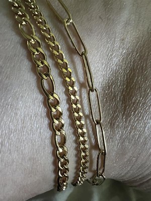 Adornia Tarnish Resistant 14k Gold Plated Curb Chain, Paper Clip Chain, and Figaro Chain Anklet Set