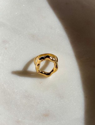 Product Name: Adornia Tarnish Resistant 14k Gold Plated Open Circle Hammered Ring