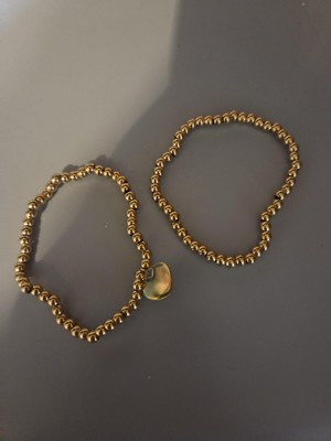 Adornia Tarnish Resistant 14k Gold Plated Set of Ball Bracelets with Heart