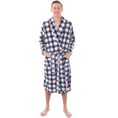 ADR Mens Robe, Plush Fleece Hooded Bathrobe Men, Men's Bathrobes, Big and Tall Bath Robe for Men Gray Buffalo Check 2XL