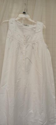 ADR White Cotton Nightgowns for Women, Victorian Vintage Nightgown, Ladies White Cotton Sleeveless Nightgown White Large