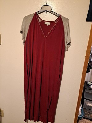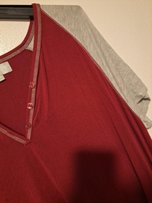 ADR Women's Soft Knit Nightgown, Full Length Henley Sleep Shirt Pajama Top w/ Pockets Raspberry Small