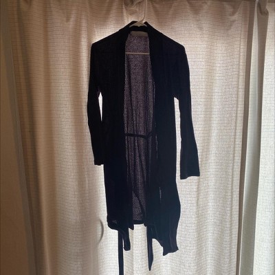 [This review was collected as part of a promotion.] This is a super comfy robe. I love the knit material and also love how neutral it is. The baby waggle knit is easy to put on top of other clothes and the wrap tie is simple to secure.