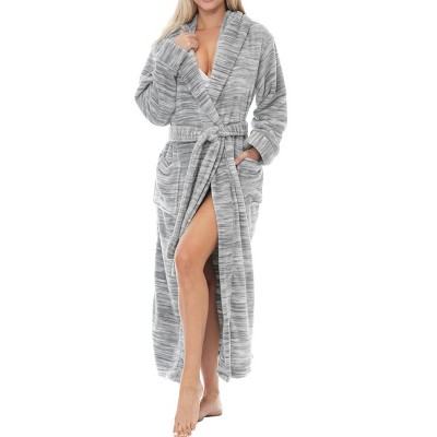 ADR Women's Zip Up Cozy Plush Robe, Slim Fit Long Bathrobe with Two Way Zipper Light Heathered Gray Small